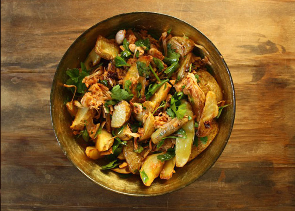 Lavamos en agua fría y escurrimos la jackfruit y la desmenuzamos con las manos.